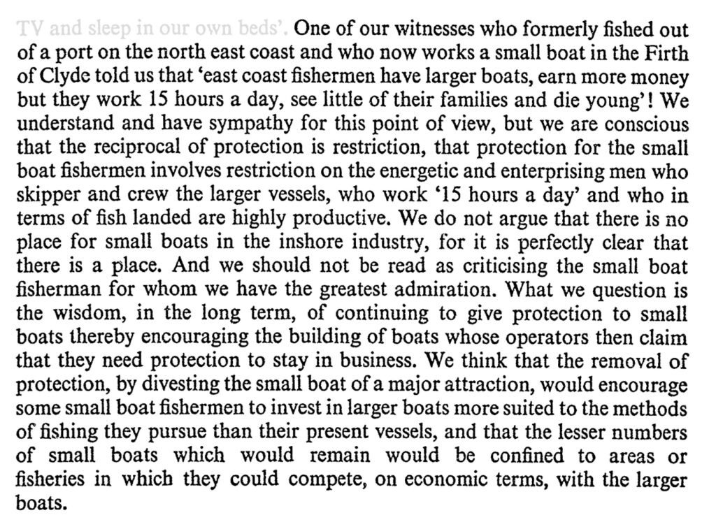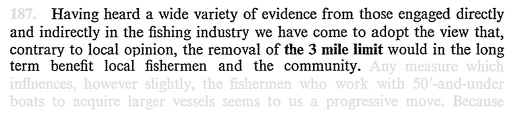 If one thing is clear from the Cameron report, it’s that the government knew that local fishing communities were against removing the three mile limit, yet their knowledge and opinions were disregarded in favour of a more industrial and centralised fishing industry.